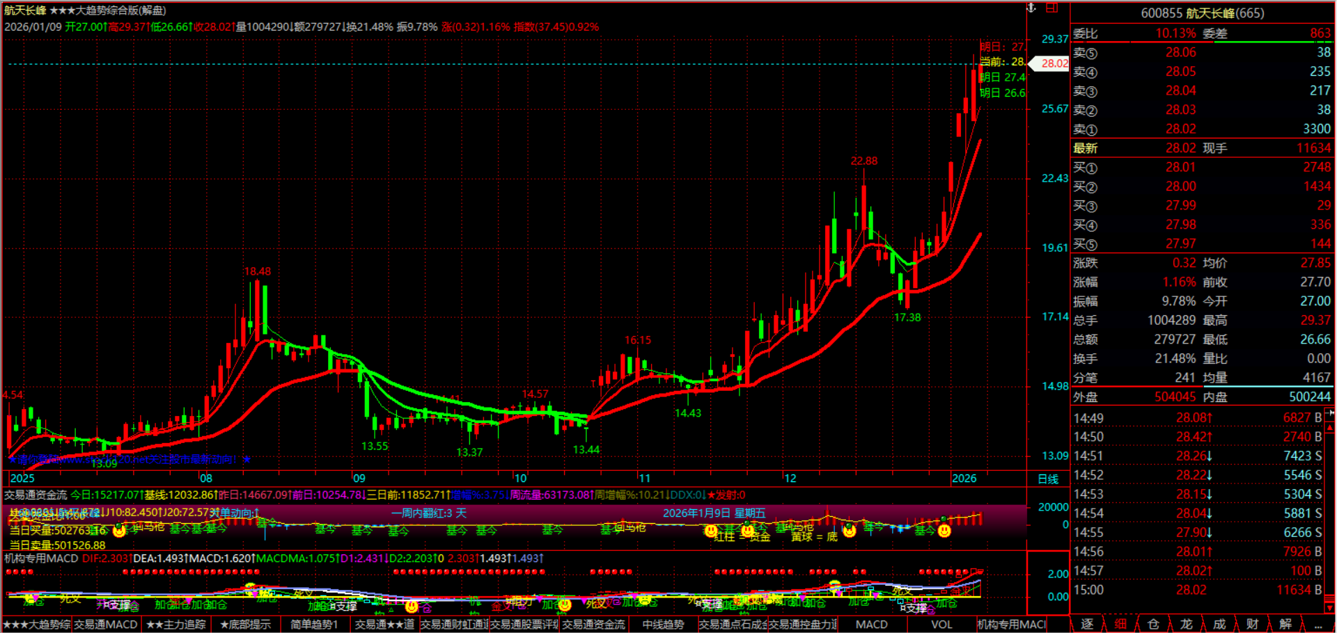 当市场迷雾笼罩,总有一群强者以远见为锋、以同心为盾,在涨跌博弈中劈开混沌;当热点轮动加速,总有一支劲旅以精准为刃、以坚守为基,在机遇浪潮中独占鳌头。2025年12月8日至2026年1月9日,我们——股市休闲团体,用一场横跨月余的实战征程,书写了关于实力与凝聚力的巅峰答卷。 短线惊雷:精准狙击 引爆势能 短线战场,唯快不破;热点博弈,唯准不立。我们摒弃犹豫观望,直击市场核心脉络,于创业板与主板标的中精准锁定爆发力引擎。300751、300342双雄齐驱,以锐不可当之势撕开上涨通道;300503、300446、300433紧随其后,多点开花引爆短线热潮;600498、000960沉稳发力,在震荡中突围而出。更有高光操作惊艳全场——周四果断布局000917,次日便强势封板,一日斩获涨停硕果,用极致效率诠释短线博弈的巅峰水准,完美印证“强者恒强”的实战哲学。每一次介入都踏准节奏,每一次离场都果断从容,这不是运气的偶然眷顾,而是团体成员无数次复盘沉淀的必然结果,是心有灵犀、同频共振的实力彰显。 波段登顶:顺势而为 再攀新高 波段征程,贵在审时度势;价值挖掘,重在凝心聚力。我们不恋短期浮华,深耕趋势赛道,于行业轮动中捕捉确定性机遇。300058、601179、601600稳步攀升,在波段行情中走出昂扬曲线;002342、605598、603598厚积薄发,以坚韧态势突破前期瓶颈;600776、600862逆势而上,在市场分化中锚定方向,用持续走高的态势诠释“顺势而为”的智慧。从标的筛选到仓位协同,从趋势研判到节奏把控,团体成员各司其职又紧密联动,用集体智慧抵御市场波动,在波段博弈中步步为营,终达新高之巅。 航天领潮:八剑齐发 冠绝全场 最是传奇震撼人心,最是同心所向披靡。2025年12月30日,我们精准预判航天科工系投资机遇,重磅布局600855、600271、600501、000901、000547、688552、300747、002025,八只核心标的,以“八剑齐发”之势开启领涨征程。短短十余日,8只标的尽数突破历史新高,成为市场中最耀眼的明星组合 !周四单日5只标的强势封板,600855一周两度涨停,600271、000901、688552等标的接力冲高,掀起一波又一波涨停狂潮,完美契合商业航天产业爆发的时代风口。这不是孤军奋战的侥幸,而是团体成员深耕行业、协同研判的巅峰之作;不是零散标的的简单堆砌,而是凝心聚力、精准布局的战略胜利,彰显了我们“看透本质、引领趋势”的硬核实力。 同心为炬:聚沙成塔 势不可挡 市场风云变幻,唯有同心者胜;投资征途漫漫,唯有笃行者远。一个月的时间,二十余只标的,从短线爆发到波段新高,从多点开花到航天领涨,我们用实战成果证明:伟大的征程从来不是孤军奋战,而是一群人朝着同一个方向,以专业为基、以信任为桥、以坚守为翼,在市场浪潮中并肩前行。每一次标的筛选都经过集体研讨,每一次操作决策都凝聚众人智慧,每一次上涨突破都见证同心力量。 没有凭空而来的成功,只有日积月累的沉淀;没有一蹴而就的传奇,只有众志成城的攻坚。股市休闲团体,以远见洞察机遇,以实力驾驭市场,以凝聚力铸就传奇。未来,我们将继续秉持初心,踏浪而行,与志同道合者共赴更高峰,在资本市场的星辰大海中,续写属于我们的荣耀与辉煌!